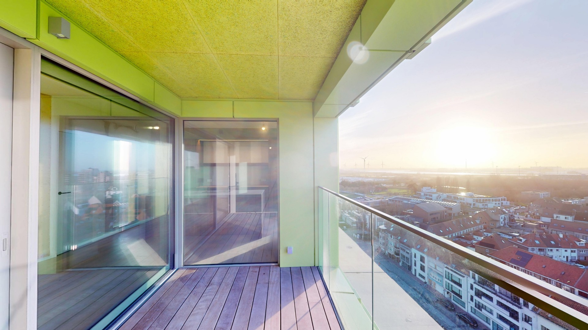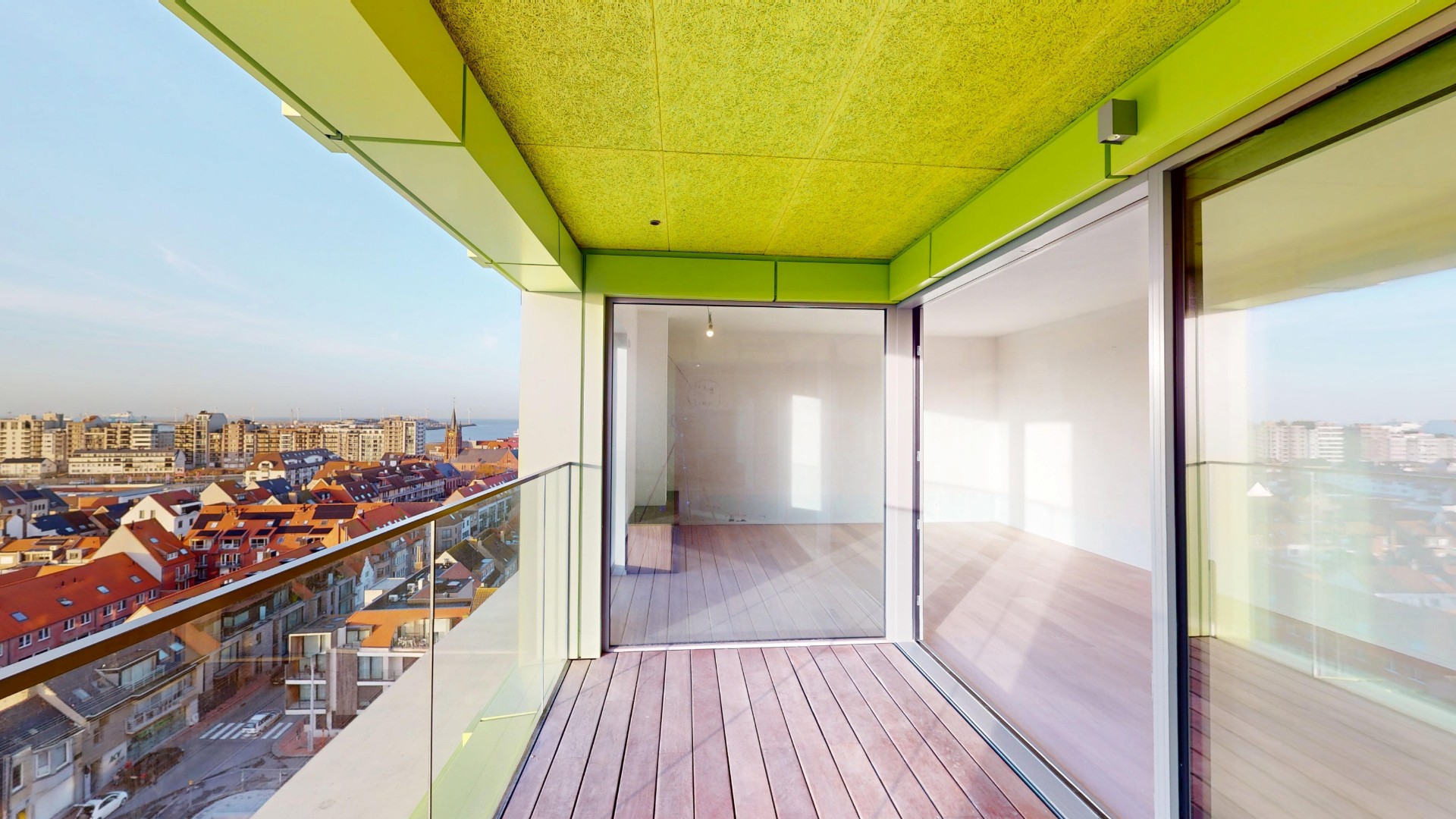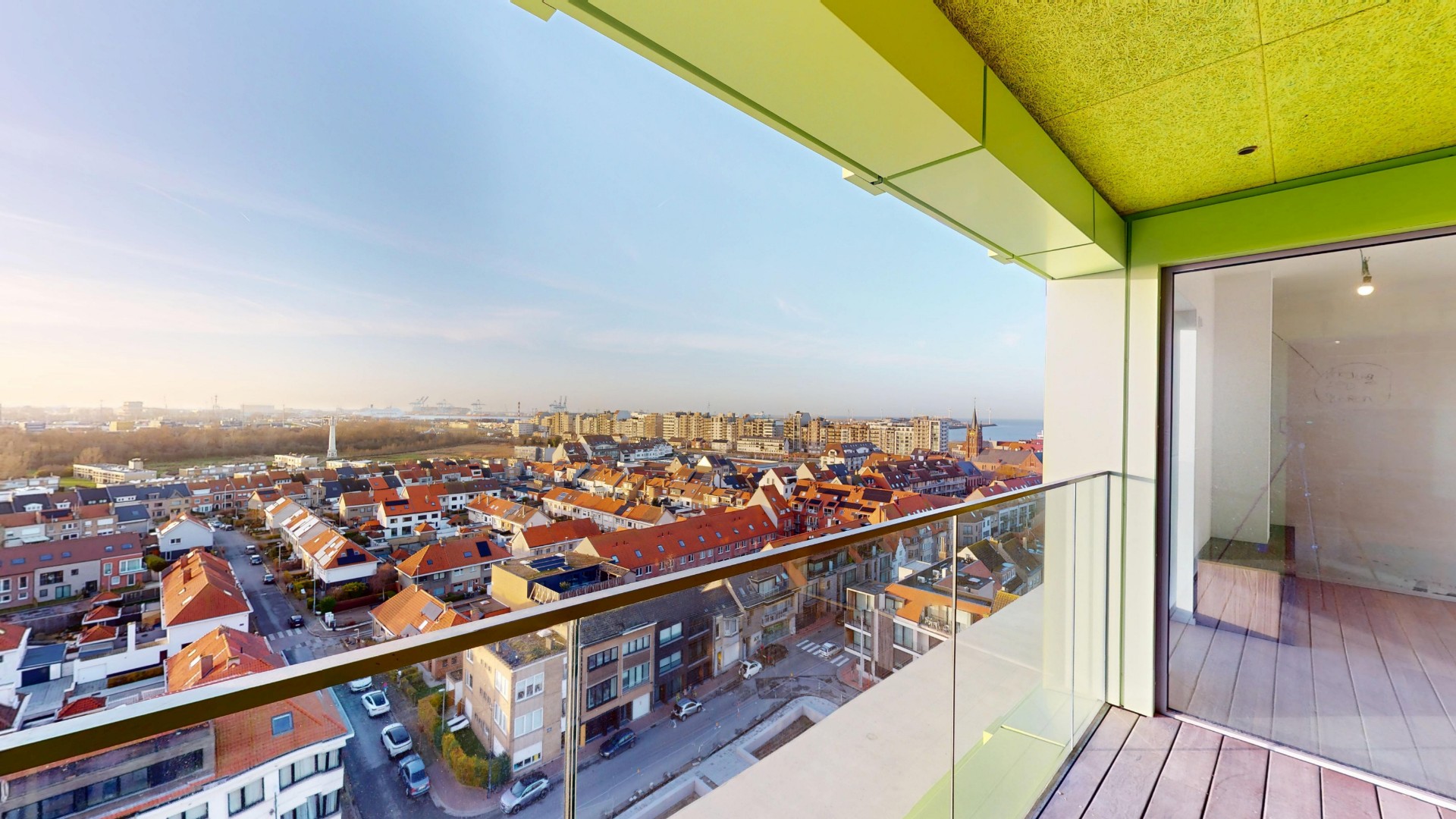 Het appartement is zeer goed georiënteerd met prachtige vergezichten vanop de tiende verdieping.