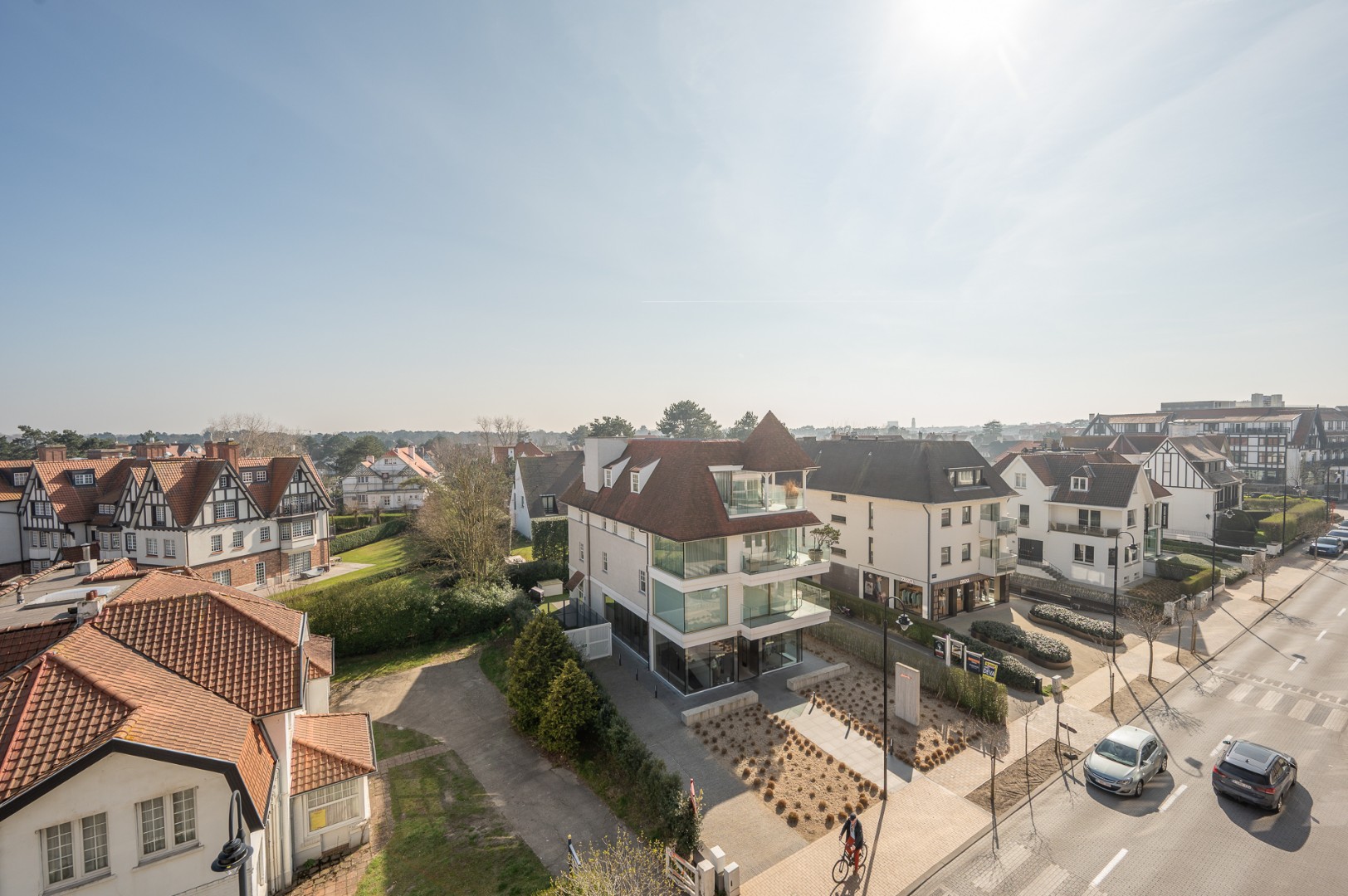 Zuidgericht appartement gelegen op Kustlaan, genietend van bijzonder mooi open zicht over de villa's en villaresidenties van Het Zoute, vlakbij Het Albertplein.