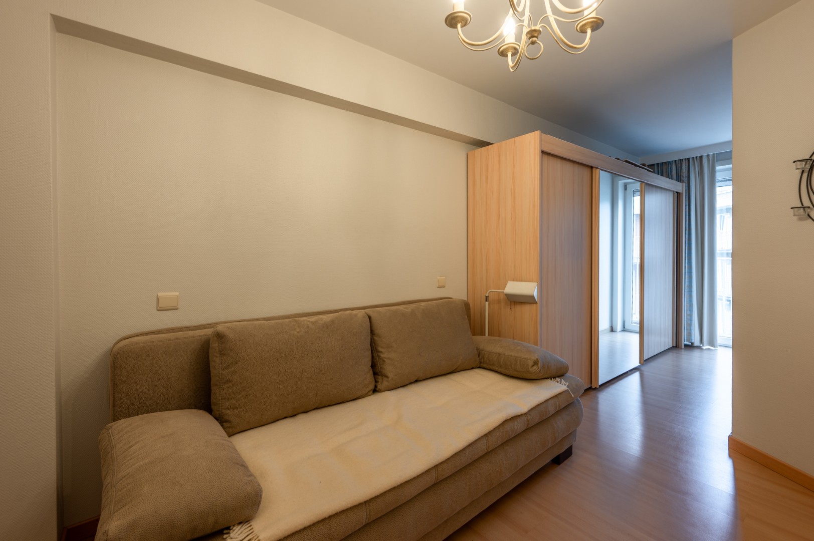 Het appartement beschikt over twee volwaardige slaapkamers, een lichtrijke leefruimte, een functionele keuken en een verzorgde badkamer. Hoewel het interieur niet modern is, verkeert het in goede staat van onderhoud en is het licht op te frissen naar eigen smaak.