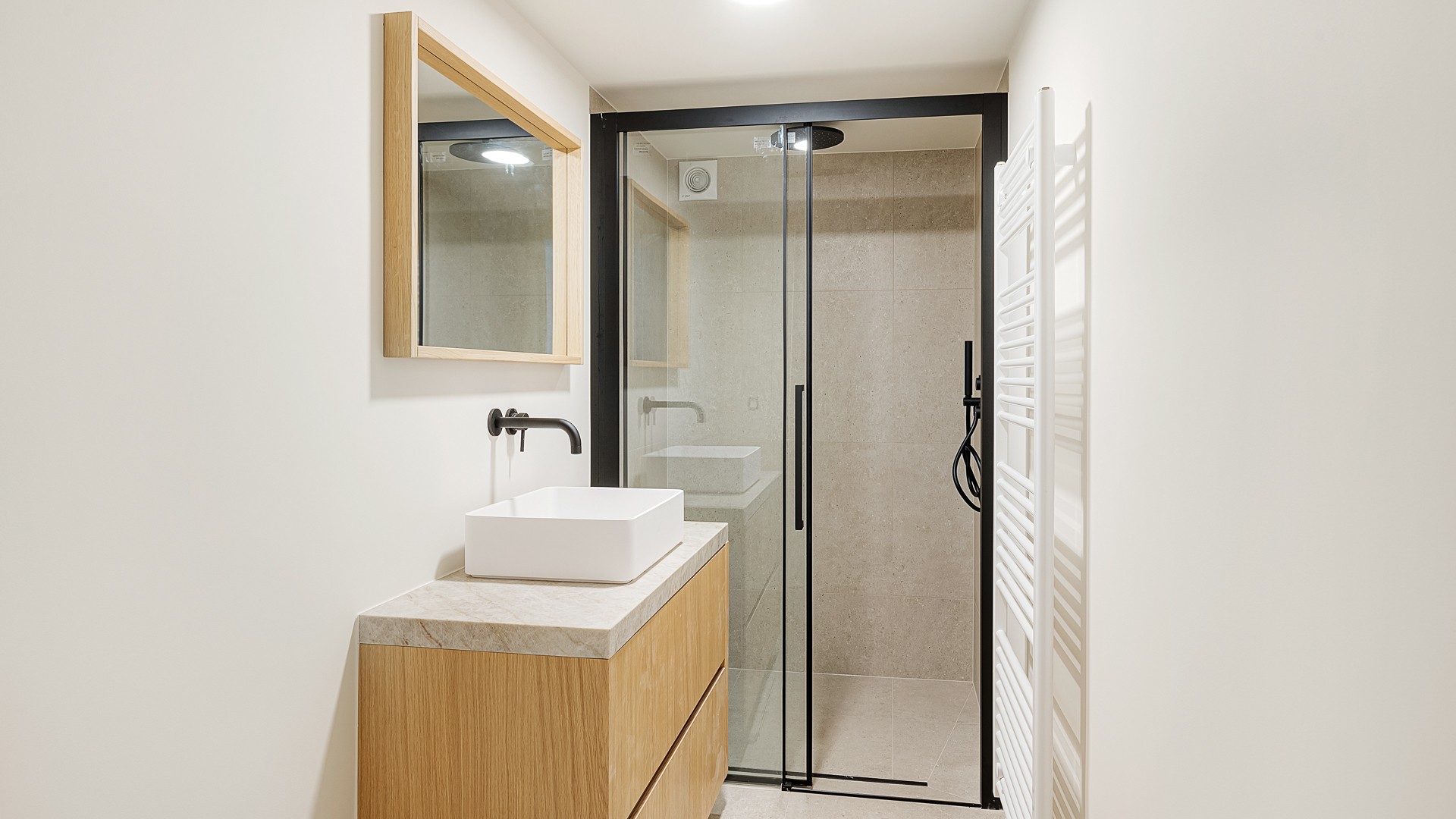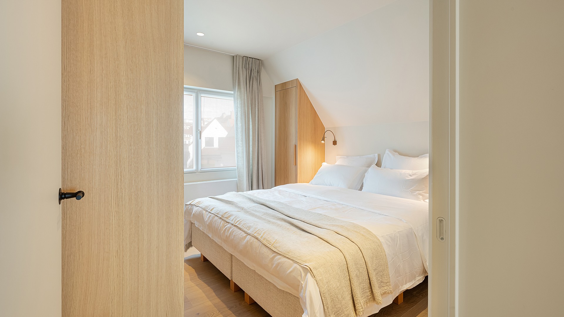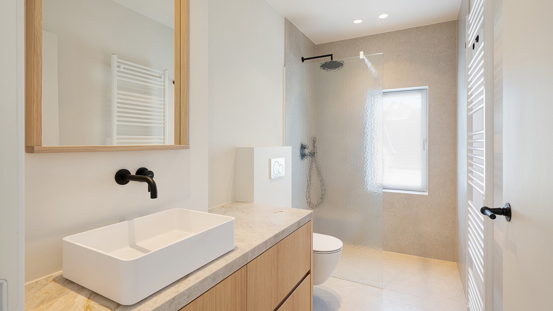 Dès votre arrivée, un hall d'entrée élégant vous accueille dans la maison. Côté rue, vous trouverez un coin salon convivial, tandis que le côté jardin abrite une cuisine ouverte aux finitions raffinées en placage de chêne. La cuisine est équipée d'appareils électroménagers haut de gamme, de deux fours et d'aménagements sur mesure bien pensés — l'idéal pour ceux qui aiment cuisiner et recevoir.
