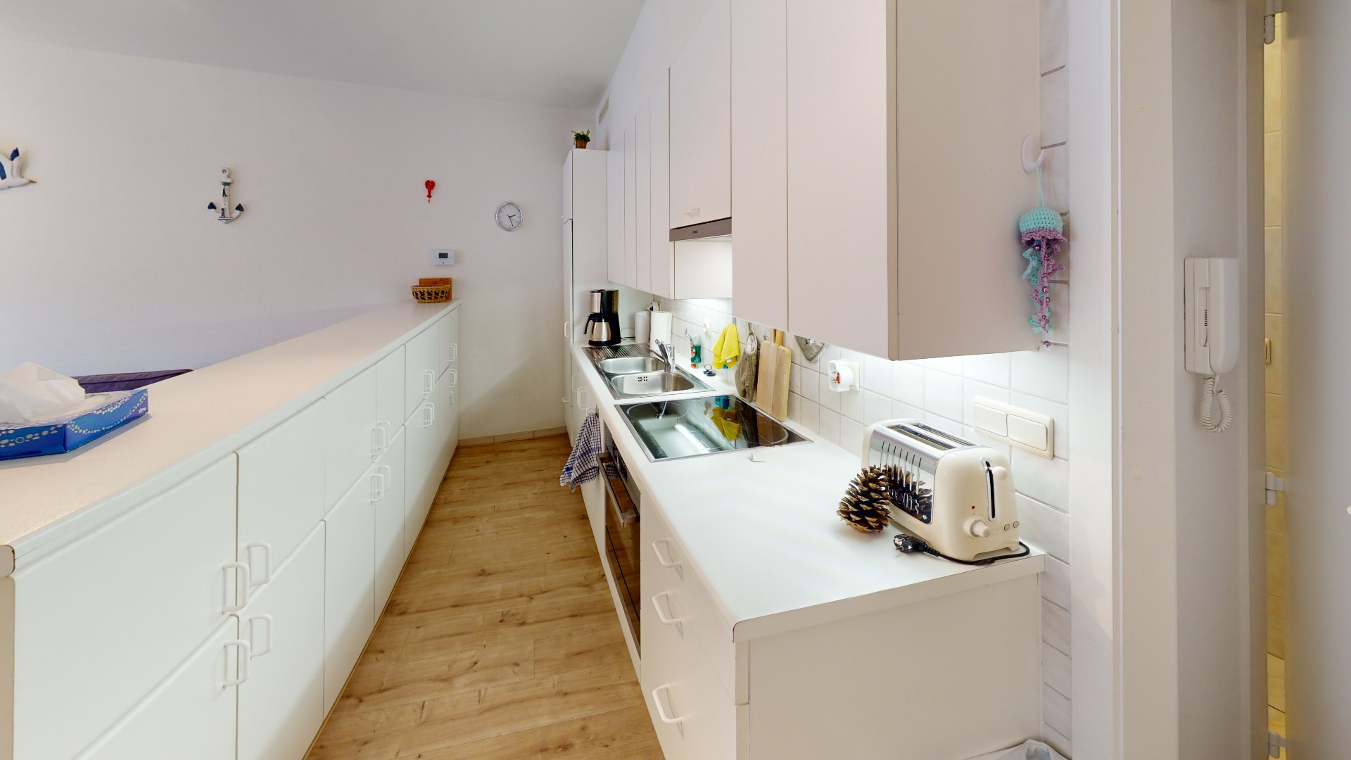 Appartement clé en main orienté sud avec 2 chambres à coucher de taille normale, très central et proche du front de mer. Le revêtement de sol, la fenêtre coulissante, les appareils de cuisine et la chaudière sont neufs.