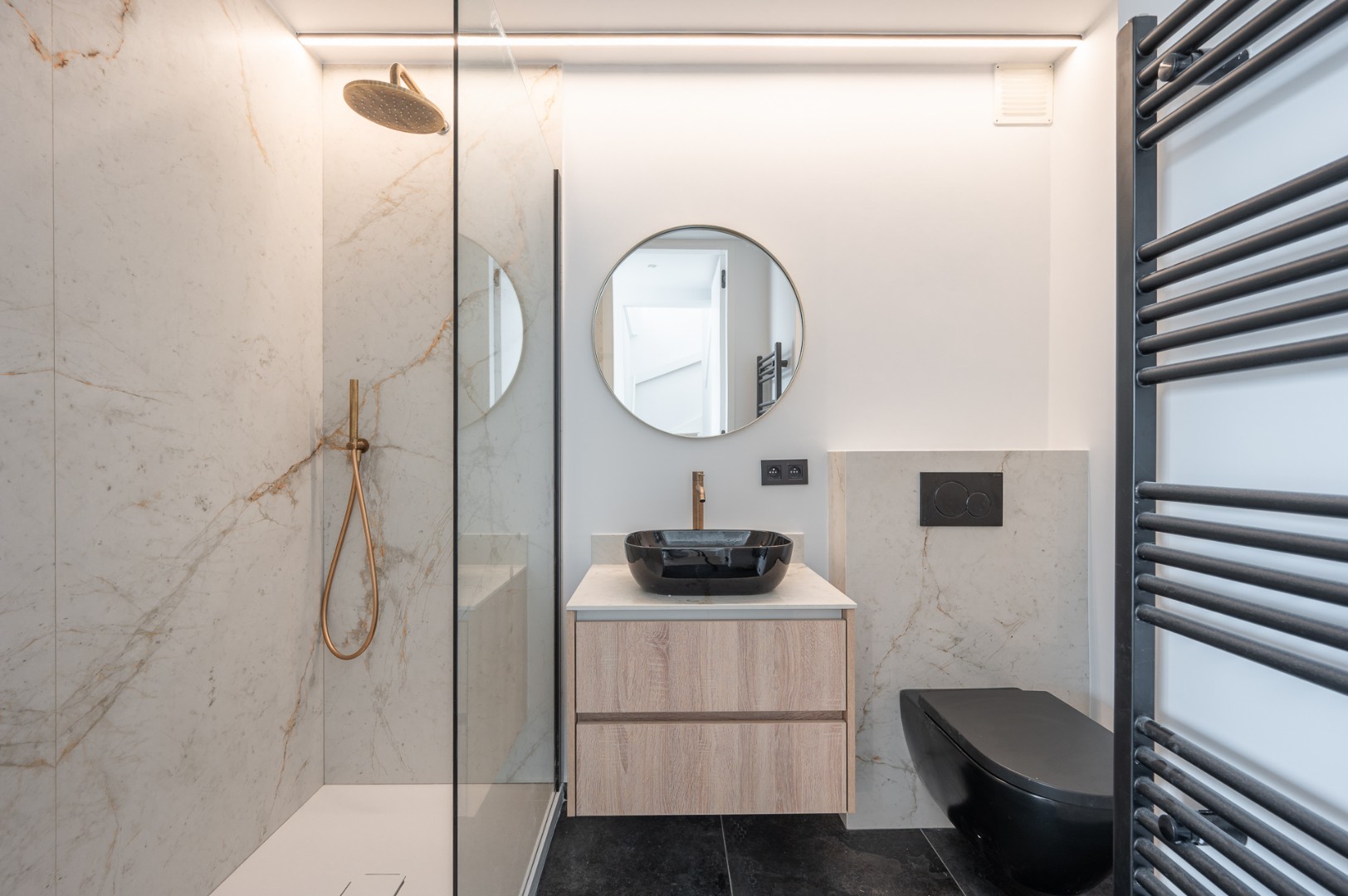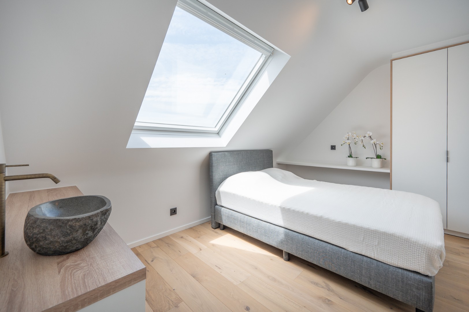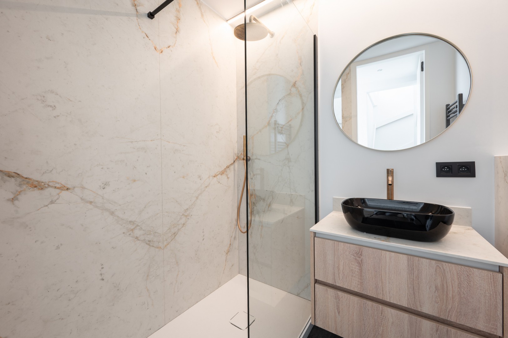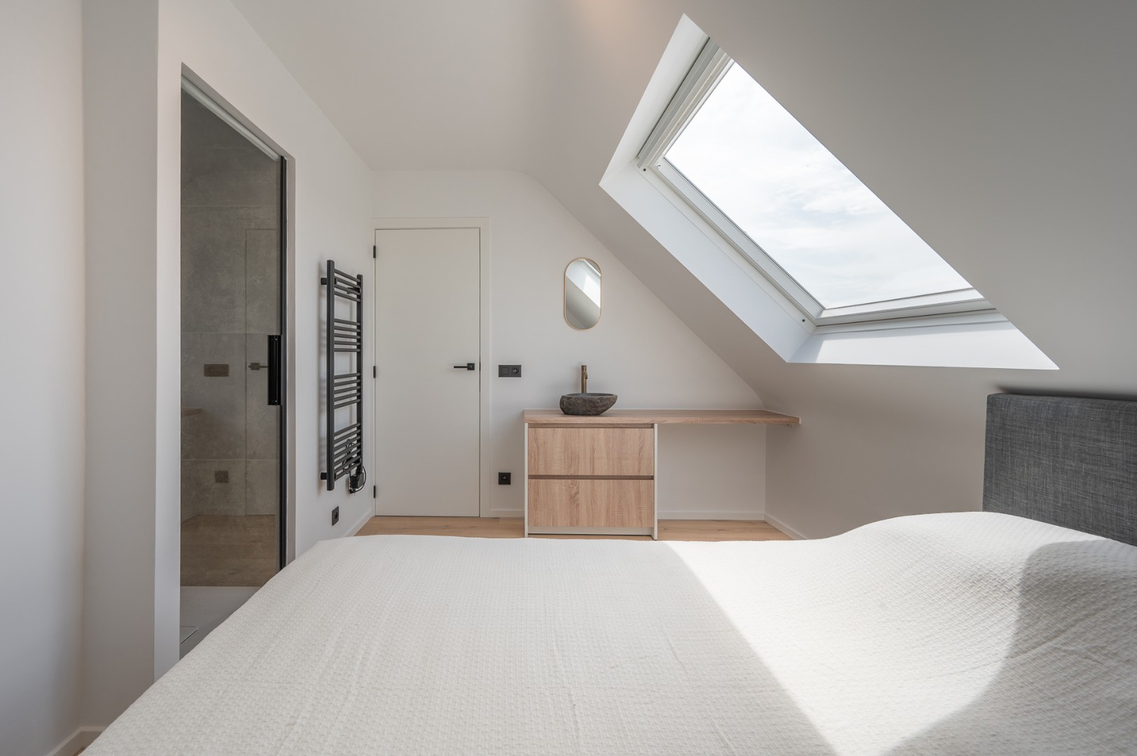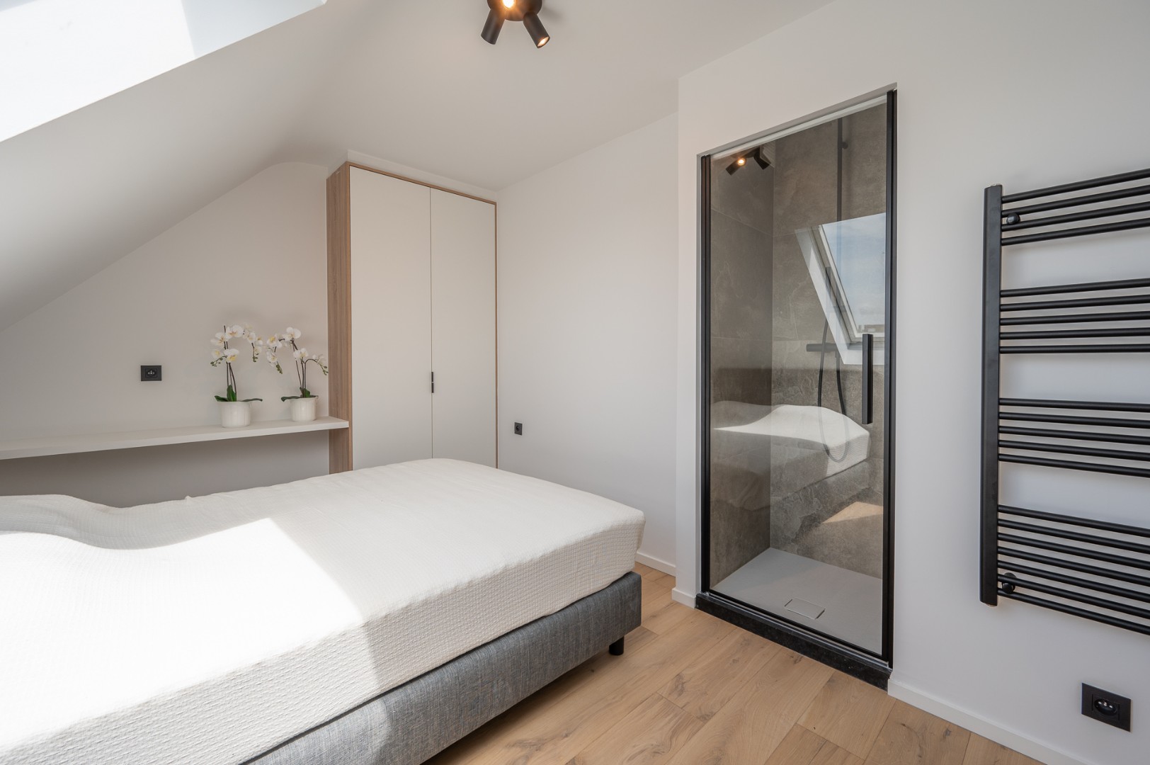Wanneer u de trap naar boven neemt, ontdekt u op de 8ste verdieping twee mooie en ruime slaapkamers, die beide voldoende comfort en rust bieden. De badkamer is modern en uitgerust met een douche en toilet, terwijl één van de slaapkamers extra comfort biedt met een eigen douchevoorziening. Daarnaast is er een handige bureau- of werkruimte op deze verdieping, ideaal voor thuiswerk of studie.