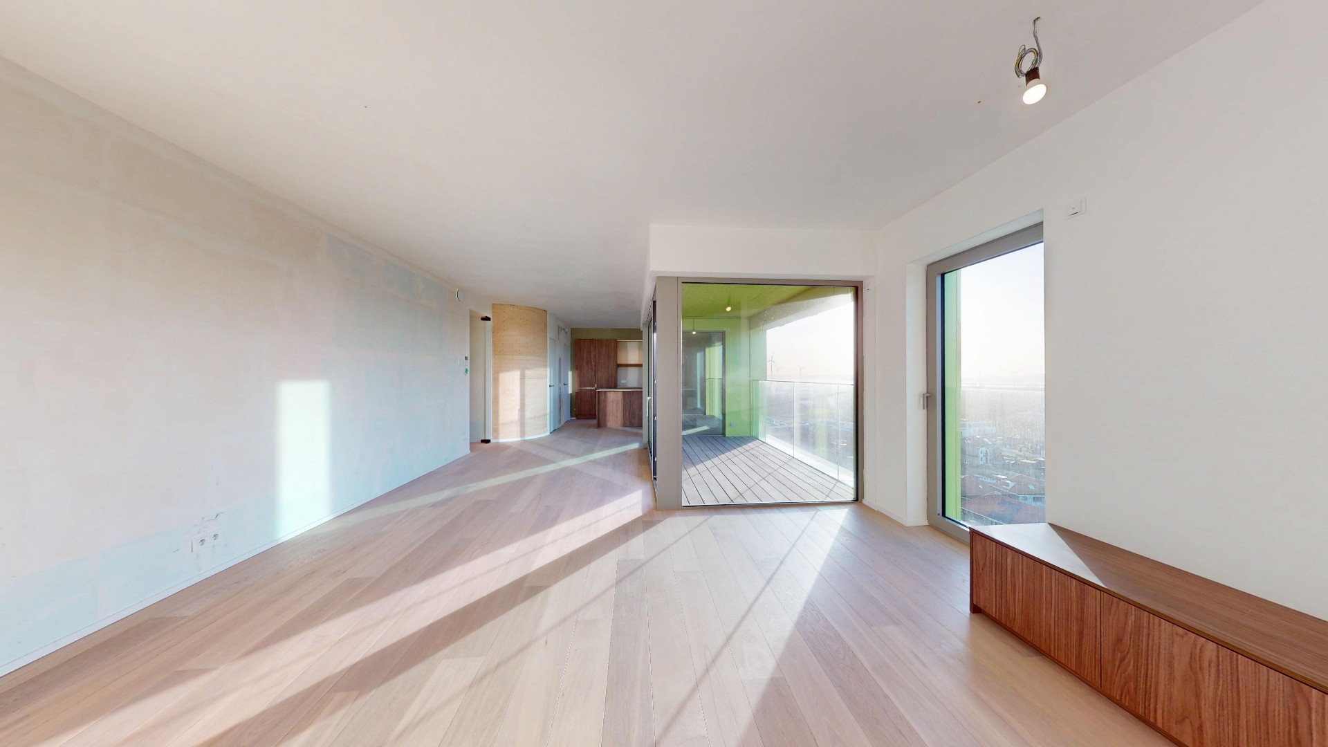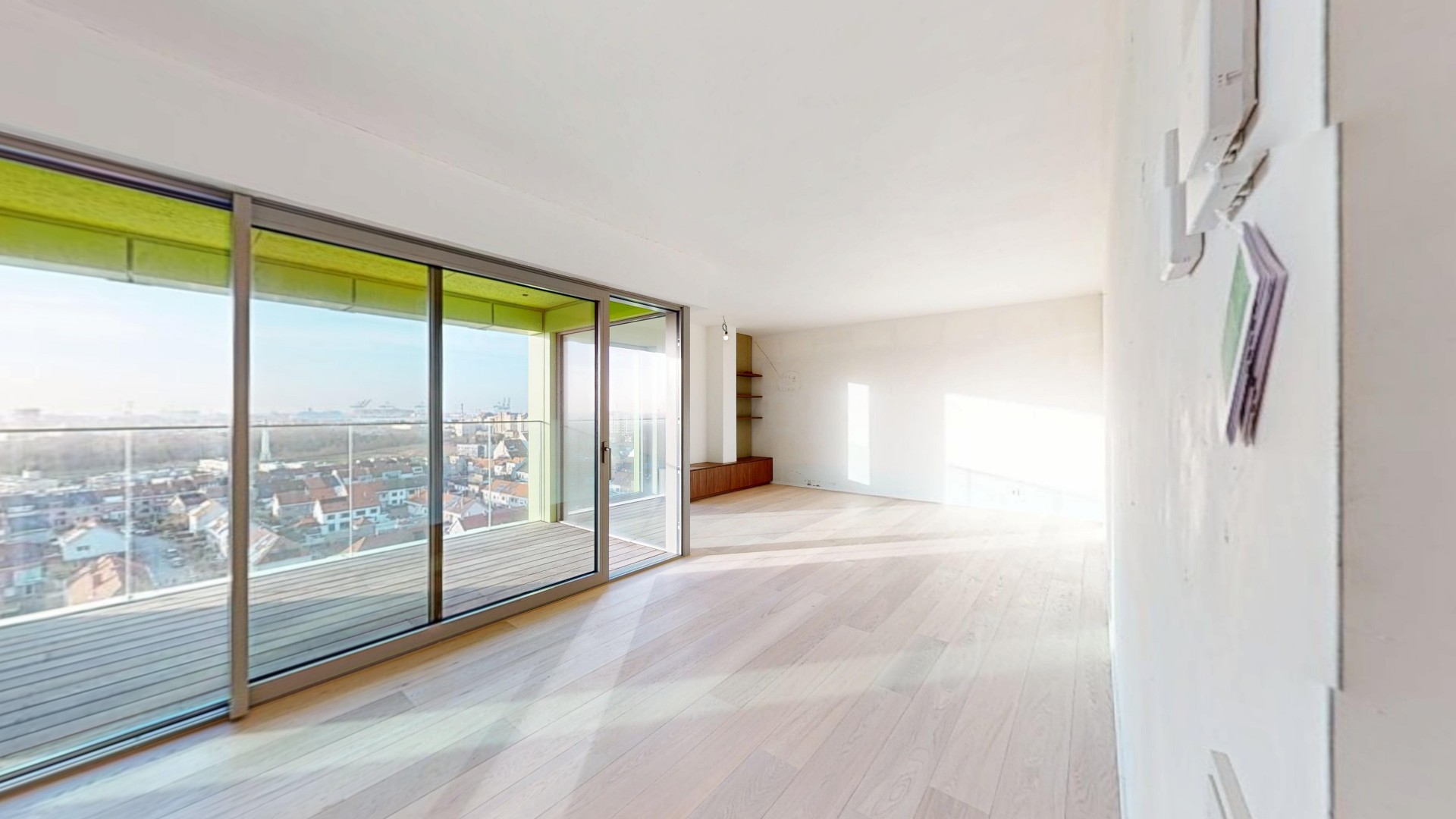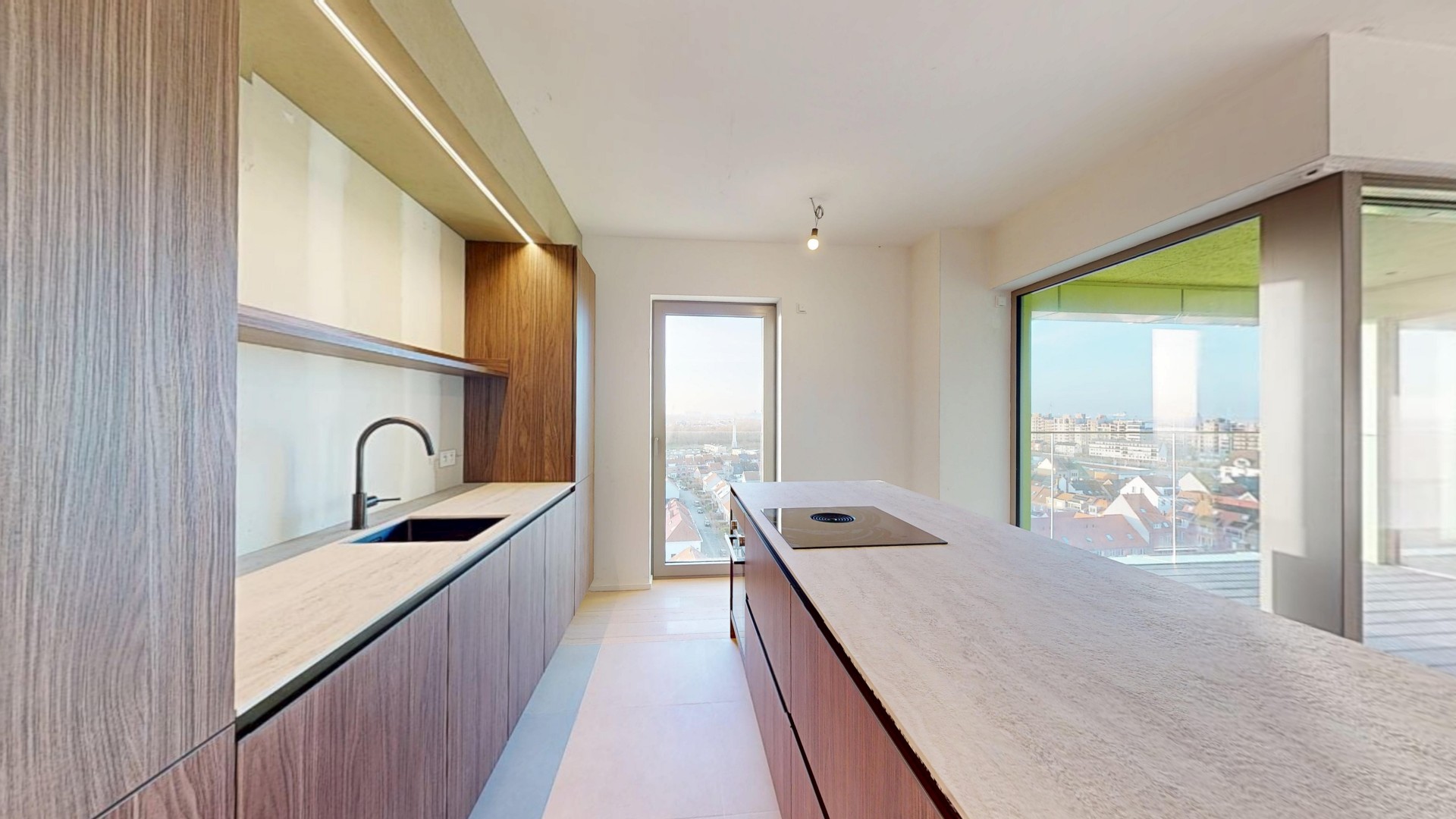 Het appartement is zeer goed georiënteerd met prachtige vergezichten vanop de tiende verdieping.