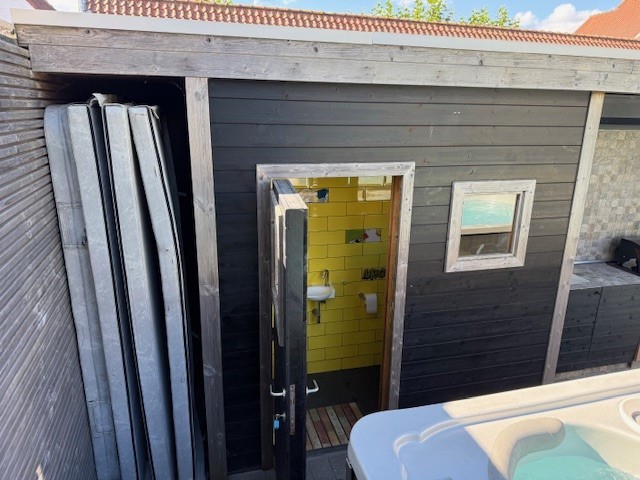 De site omvat twee ruime garageboxen van telkens meer dan 20 m², drie bergingen en een magazijn van circa 50 m². Daarnaast biedt het aparte perceel, optioneel bijkomend te koop, plaats aan vier staanplaatsen en is het momenteel ingericht als zonnige buitenruimte met zwemspa, buitendouche, buitenkeuken en omkleedruimte. (bijkomende info op aanvraag).