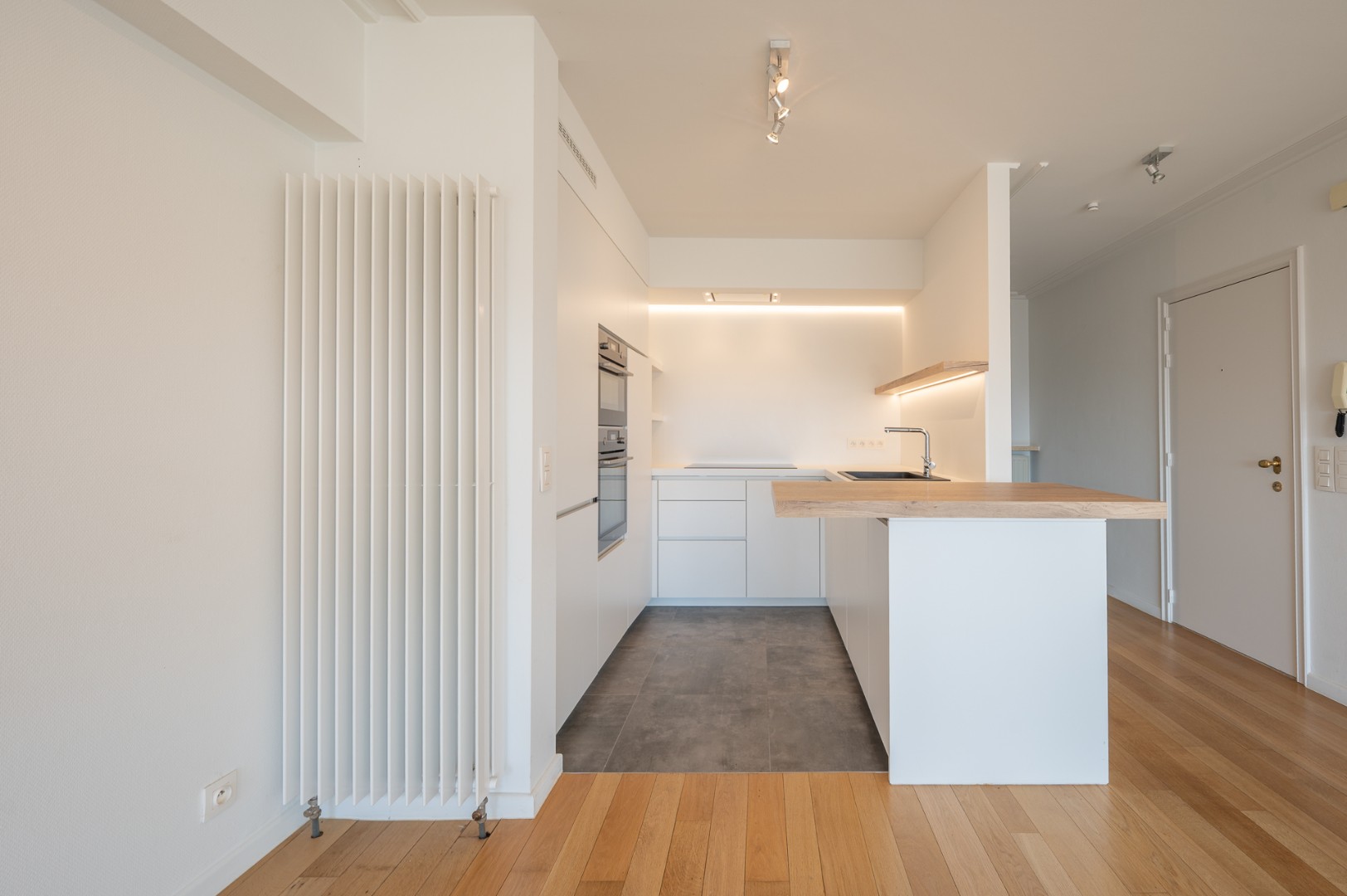 Dit instpaklaar appartement omvat een zeer ruime woonkamer met mooie gevelbreedte en terras, genietend van zeer aangenaam open zichten richting Dominicanenkerkje.