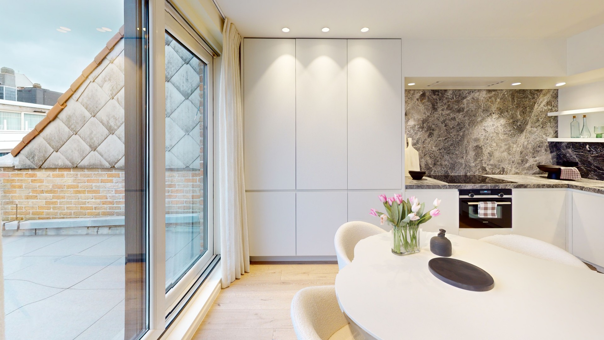 Volledig gerenoveerd penthouse appartement gelegen op de vijfde verdieping op de Leopoldlaan te Knokke-Heist. Het appartement onderging een totaalrenovatie. Het appartement is afgewerkt met oog voor detail en afwerking.