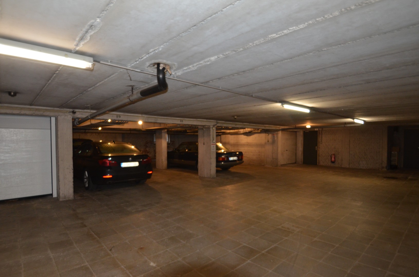 Ruime staanplaats met ca 9,5m diepte. afhankelijk van het type wagen kunnen er 2 auto's na elkaar parkeren.